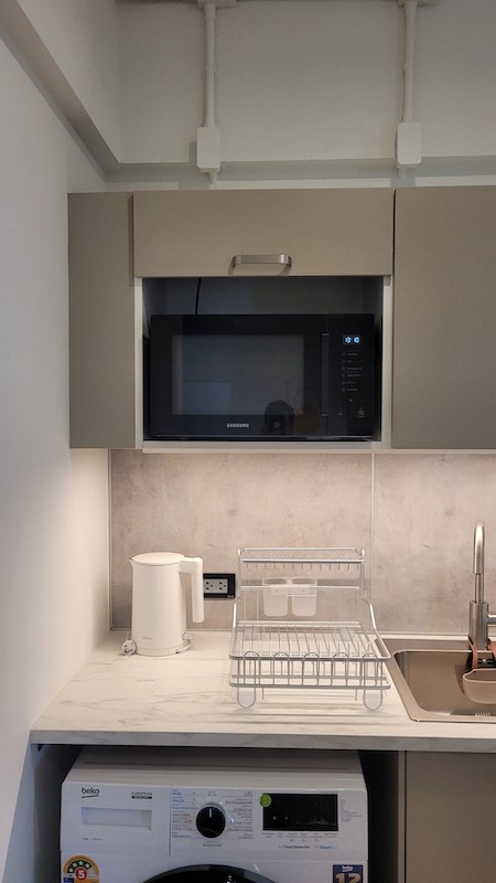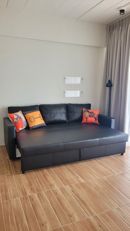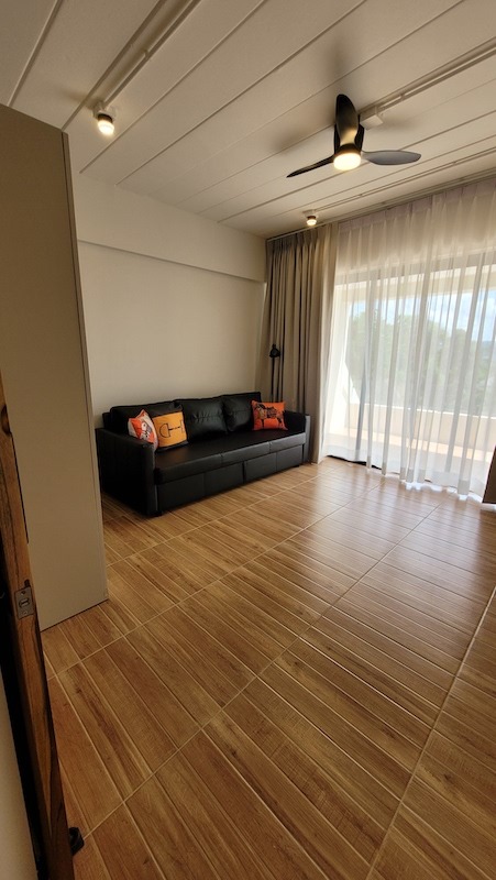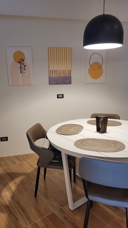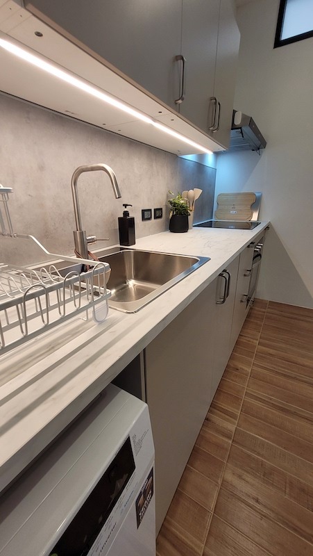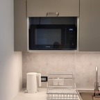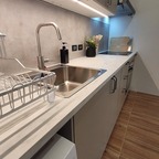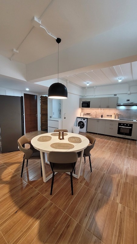 The apartment has been renovated. Everything is new, from the tiles and light fixtures to the forks and spoons.