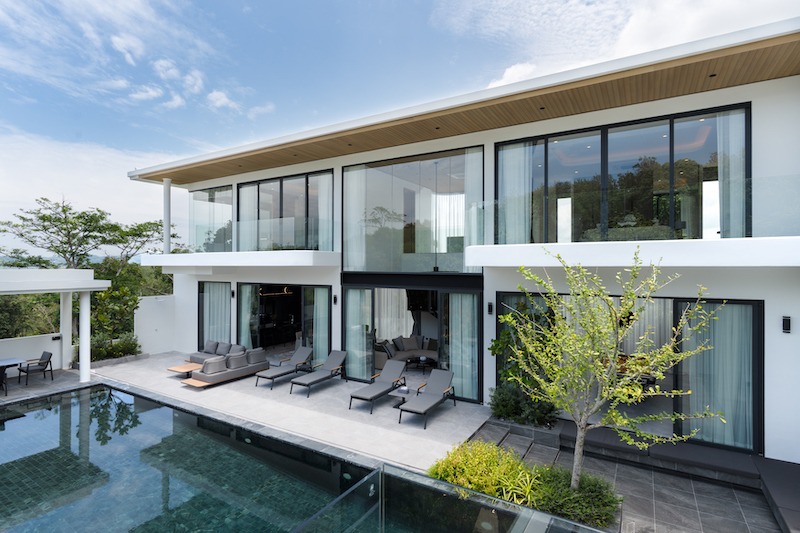 This opulent villa boast specious 4 bedrooms and 5 bathrooms on a hillside land in Banya, Thalang
