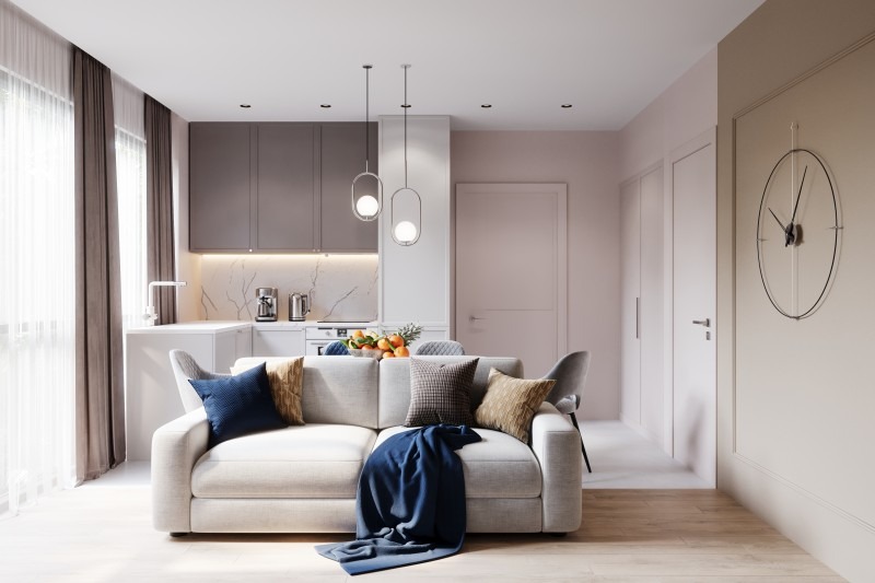 - Светлая кухня-гостиная
