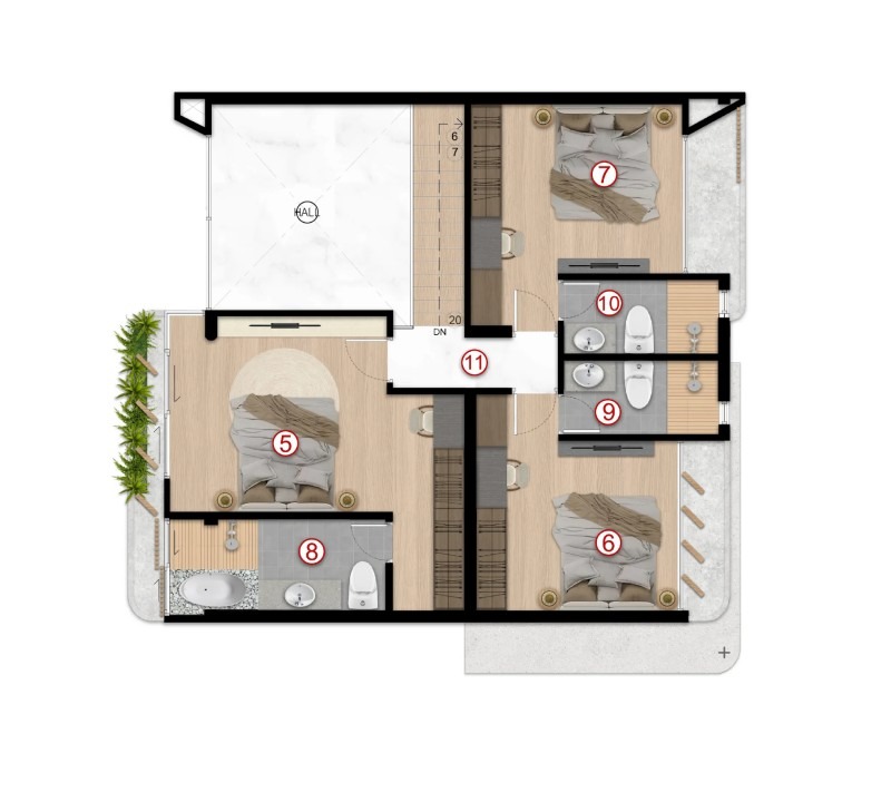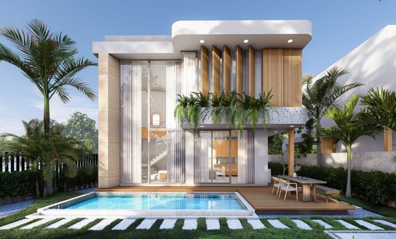 Открытая планировка безупречно сочетает внутреннее и внешнее пространство, с большими окнами, наполняющими дом естественным светом На верхнем этаже — главная спальня с панорамным видом, а на первом — прямой выход к бассейну. Идеально подходит для семей или тех, кто ценит дополнительное пространство.
